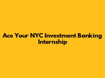 Ace Your NYC Investment Banking Internship